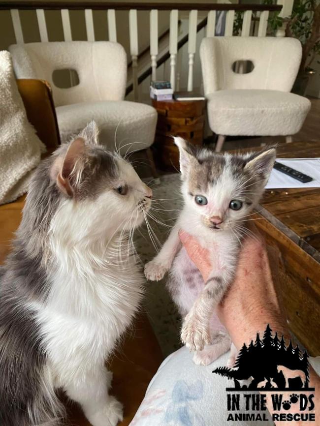 Description: Remember the momma cat and kittens that were found in a cardboard box in a ditch alongside the highway? Look how great they are doing now! Foster mom Dianne has worked wonders with momma who is still a bit mistrustful but who is a lot more accepting of humans. The three kittens that survived the ordeal are thriving, transitioning to solid food and being as inquisitive and playful as only kittens can! Keep watching the page for updates, it won’t be long before they are all ready for their forever homes!